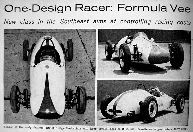 other early print articles, please contact the webmaster (link below). A VERY interesting picture and article from the early (and WILD) days of Formula Vee - 1967 @ Monaco Car and Driver also had an article or 2. This one is from June 1965 by Brock Yates (Quote: "Mark my words, Formula Vee competition is going to be around for a long while, because it just may be the best amateur racing class ever devised" ... I think he was right! <G>). Hot Rod Magazine produced a Volkswagen Handbook in 1963 that included several pages specifically about Formula Vee. You can see them HERE. forums.Autosport.com has a thread about Formula Vee back in the 60's that is interesting. I have reproduced part of it here incase the thread gets erased at some point. An early article for FV (origin unknown) Formula Vee is a single-seat junior racing league that was governed by strict
