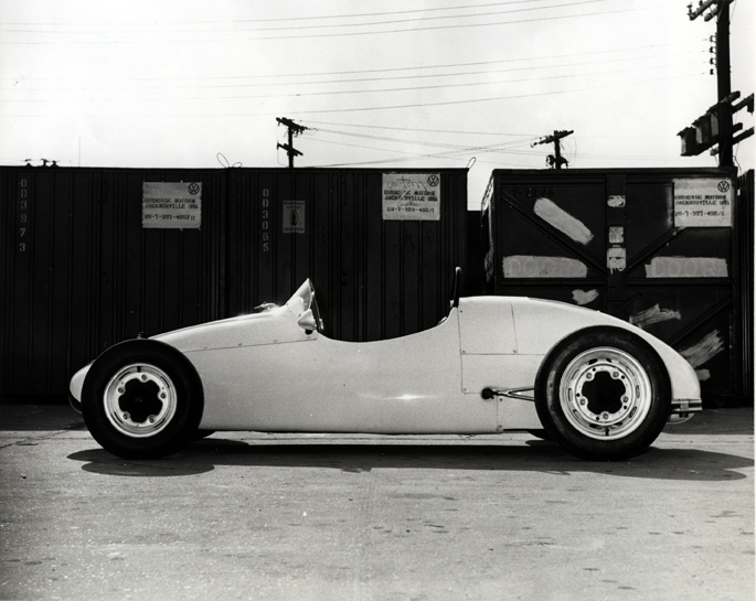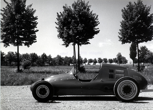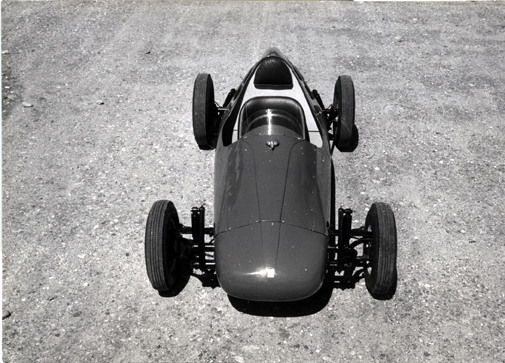 The Nardi, as it is generally called, is the result of a commission to Enrico Nardi in Italy by Hubert Brundage for a Formula Junior using standard VW parts. A new 1958 113 VW beetle was sent to Torino by Mr. B for Nardi to disassemble and use engine, transmission, suspension,etc. for the single seat race car.This car was the beginning of the class that we still today recognize as "Formula Vee". In the right, middle of the home page 40th Anniversary picture (shown again below),